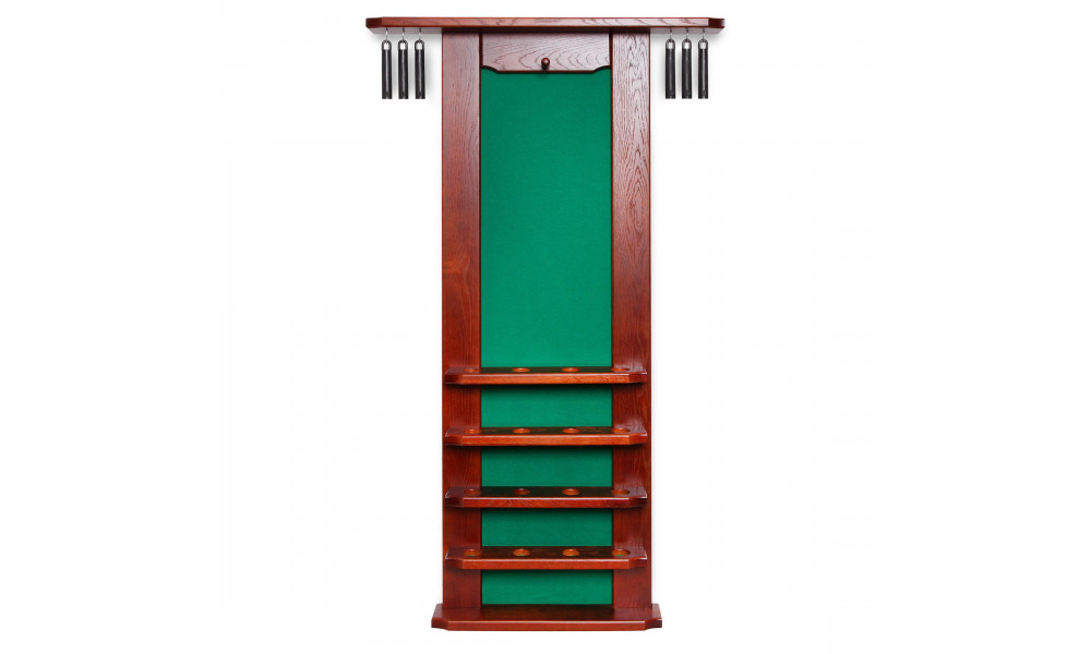 Кроме киев, модель предназначена для размещения бильярдных шаров, треугольника и других аксессуаров. Шары надежно фиксируются на горизонтальных полочках в специальных нишах. Для треугольника предусмотрен крюк в верхней части киевницы. Задняя панель киевницы обтянута сукном зеленого цвета.